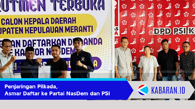 Kabaran Meranti, - Prosesi penjaringan calon kepala daerah terus mengemuka dengan keikutsertaan aktif Tim Sahabat H Asmar, yang terlihat mengambil formulir pendaftaran bakal calon di dua partai politik, yakni Partai Solidaritas Indonesia (PSI) dan Partai Nasdem.